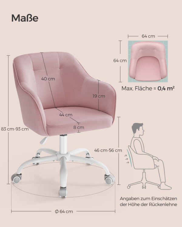 - Dydis: 64 x 64 x (83-93) cm (D x Š x V)