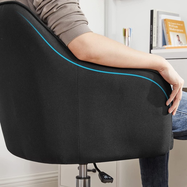 - Didžiausias patogumas: skirtingo dydžio žmonėms reikia skirtingo aukščio kėdžių, kad būtų pasiektas optimalus sėdėjimo patogumas. Dėl šios priežasties šios biuro kėdės aukštis reguliuojamas, todėl ji tinka ir aukštiems, ir žemiems biuro herojams, o gerai paminkštintas atlošas ir porankiai puikiai paskirsto spaudimą jūsų kūnui. Dėl orui laidaus paviršiaus, pagaminto iš juodos spalvos lino imitacijos, sėdėti ant šios kėdės taip pat yra tikras malonumas.