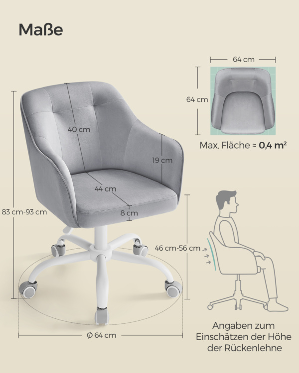 - Dydis: 64 x 64 x (83-93) cm (D x Š x V)