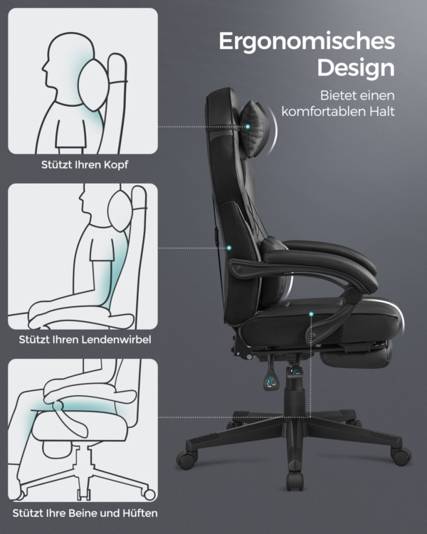 • Kojų atrama: Patogi kojų atrama, leidžianti atsipalaiduoti ir sumažinti nuovargį.