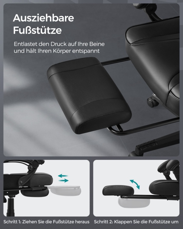 Biuro kėdė su kojų atrama ir juosmens pagalvėle, keliamoji galia iki 150 kg