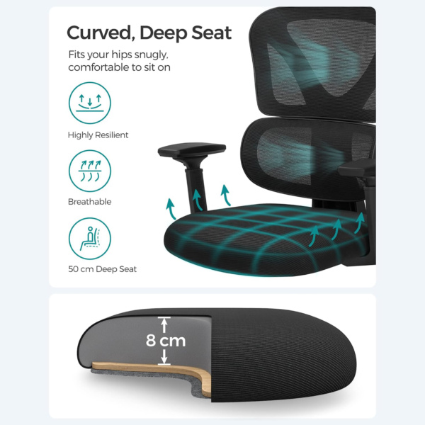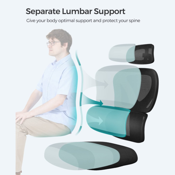 - Ši tinklinė kėdė suteikia patogią atramą su atskira juosmens atrama