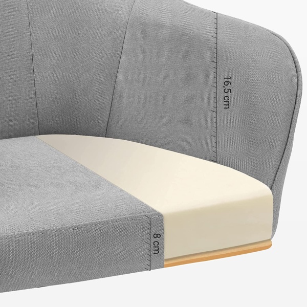 - Kvėpuojantis paviršius: Šviesiai pilkos spalvos lino imitacijos paviršius leidžia sėdėti ant šios kėdės tikru malonumu.