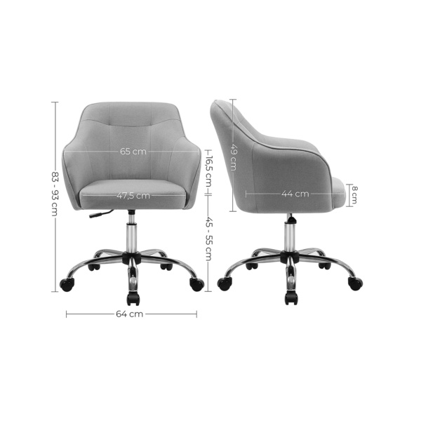 | Bendras kėdės dydis: | 65 x 69 x (83-93) cm (D x Š x V) |