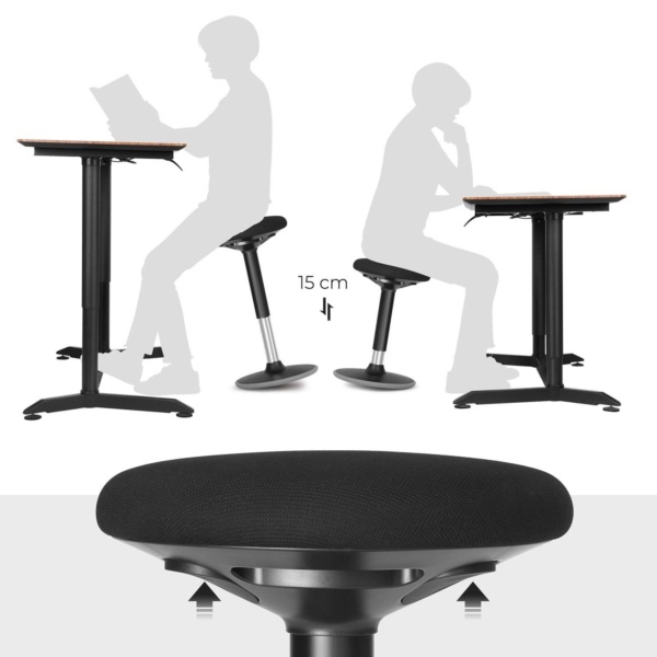 Dėl ergonomiško dizaino ši darbo taburetė yra praktiškas jūsų biuro ar kabineto priedas. Jos sėdynė paminkštinta 7 cm storio putplasčiu ir aptraukta orui laidžiu audiniu – įsirenkite patogią taburetę savo kabinete!