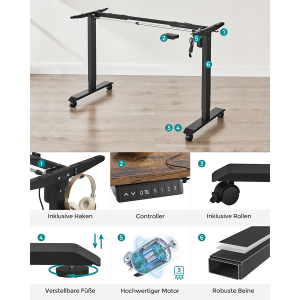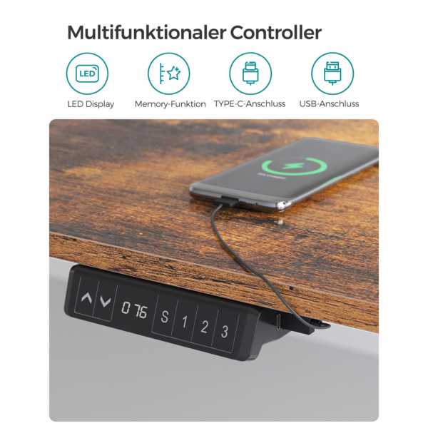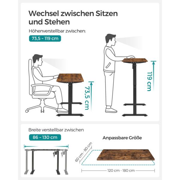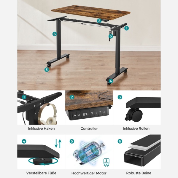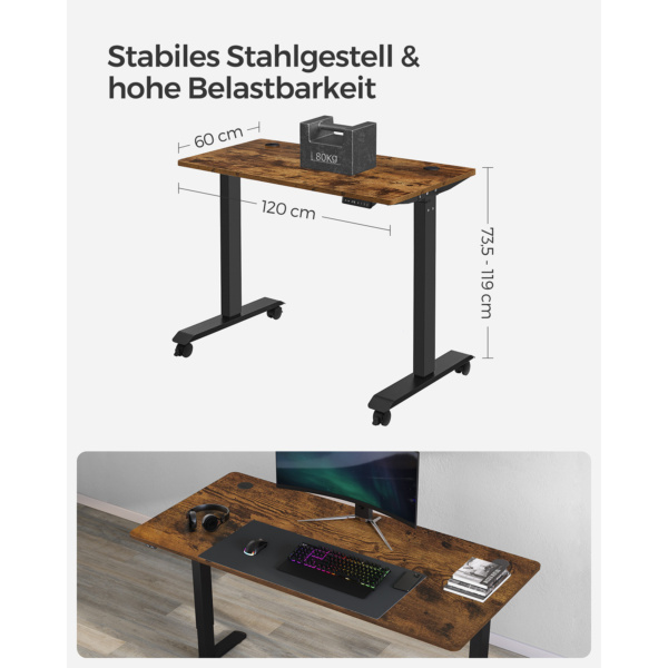 Elektrinis reguliuojamo aukščio darbo stalas 120 x 60 Vintažinis