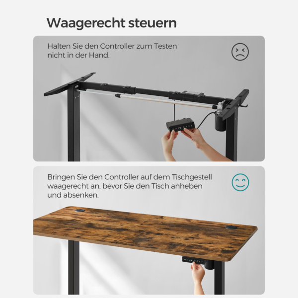 - Prieš išbandydami aukščio reguliavimą įsitikinkite, kad valdiklis yra lygus. Testavimo metu nelaikykite jo rankoje.