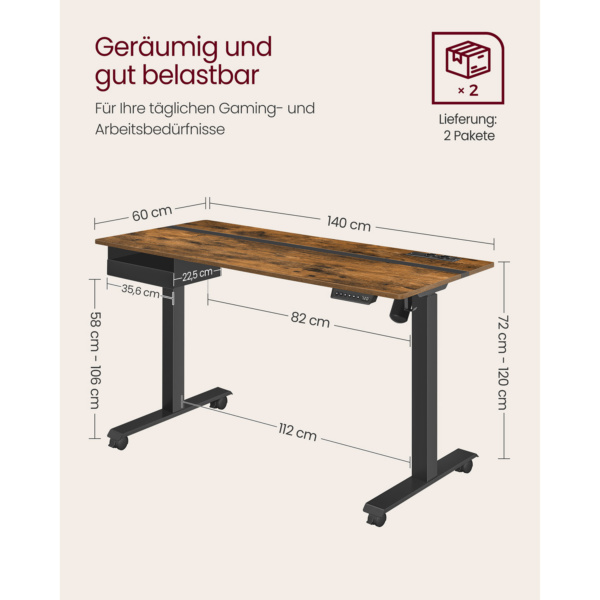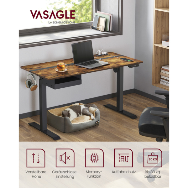 Būkite pirmas aprašęs “Elektrinis reguliuojamo aukščio darbo stalas 140 x 60 cm vintage rudai juodas”
