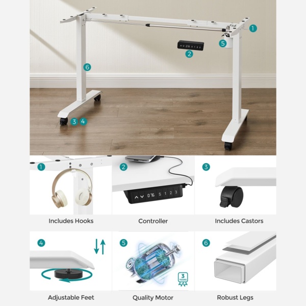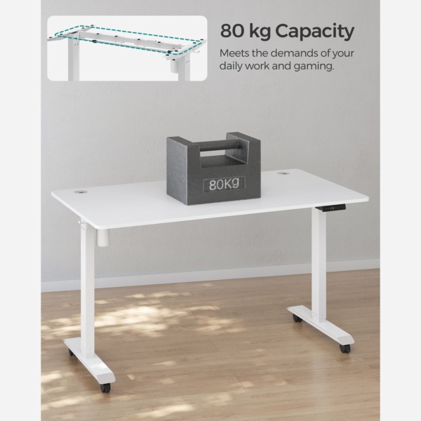 Šio elektrinio rašomojo stalo aukštis reguliuojamas, todėl jis tinka visiems šeimos nariams, juo gali naudotis ir vaikai, ir suaugusieji. Jei nenorite visą laiką sėdėti, šis stalas netgi leidžia dirbti stovint – taip apkraunamas stuburas ir sudeginama daugiau kalorijų. Puikiai tinka visiems, kuriems tenka ilgai sėdėti prie rašomojo stalo biure ar darbo kabinete.