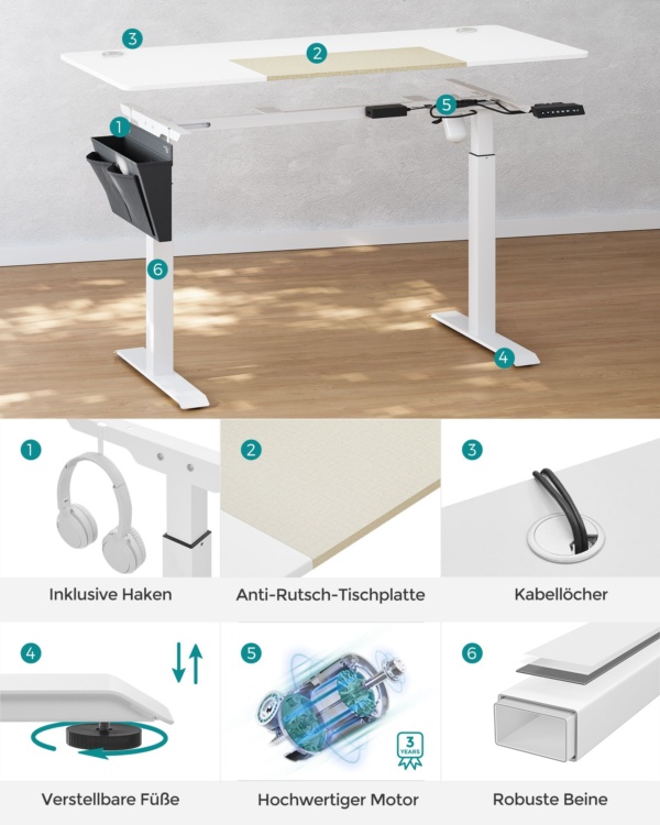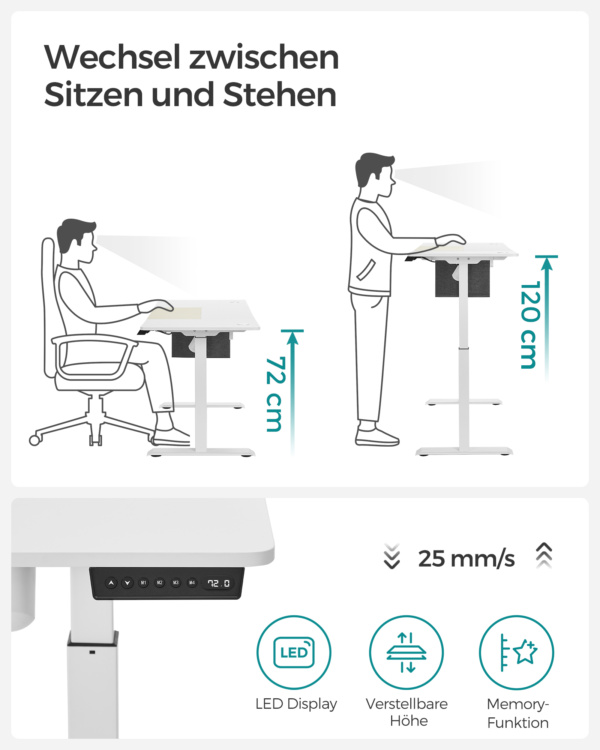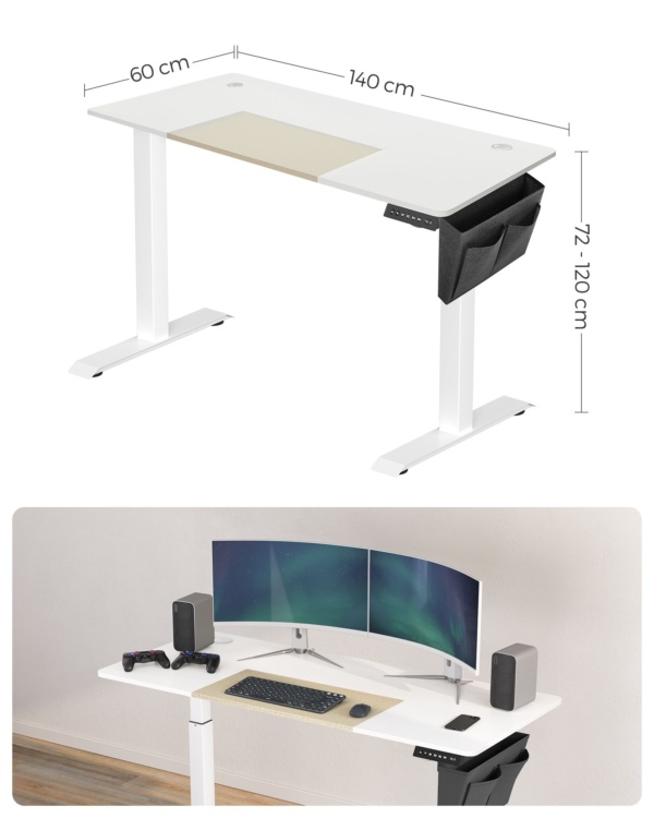 Elektrinis reguliuojamo aukščio darbo stalas „ErgoLift Dove” 140 x 60 cm
