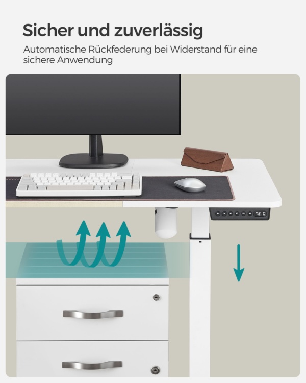 - Kad apsaugotumėte stalviršį nuo smūgių ir įbrėžimų, nustatykite didesnę įmontuoto jutiklio vertę, kad reguliuojant aukštį būtų aptikti kieti daiktai.