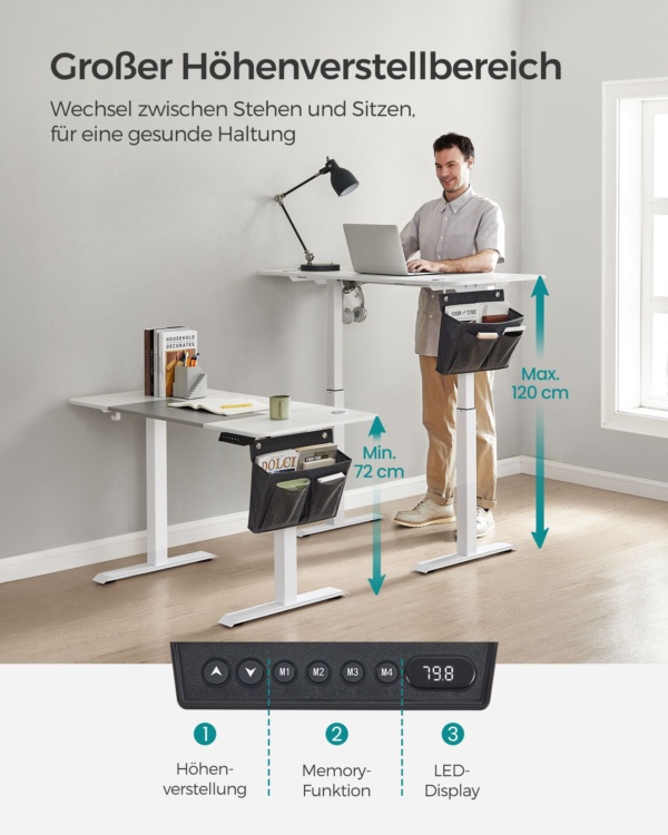 Elektrinis reguliuojamo aukščio darbo stalas „ErgoLift Modern” 120 x 60 cm