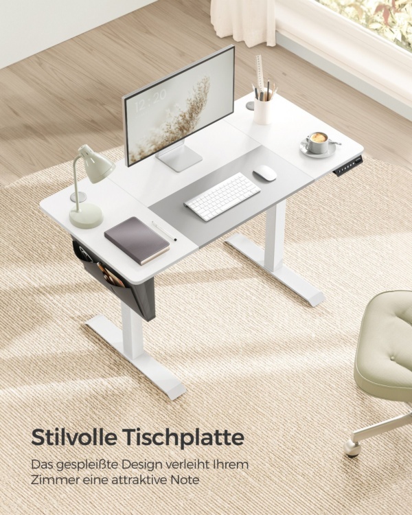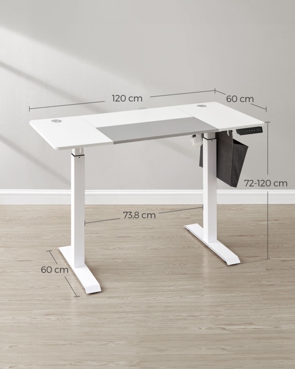 Reguliuojamo aukščio elektrinis stalas basic baltos-balandų pilkos spalvos