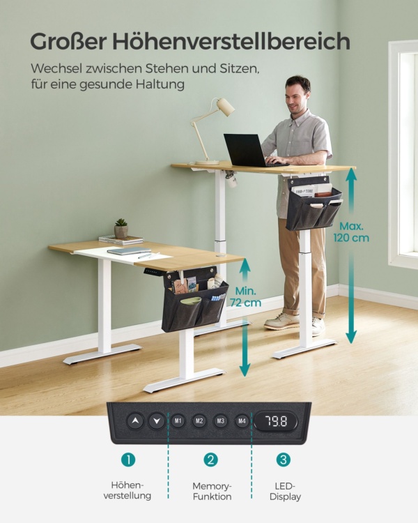 Elektrinis reguliuojamo aukščio darbo stalas „ErgoLift Oak” 120 x 60 cm