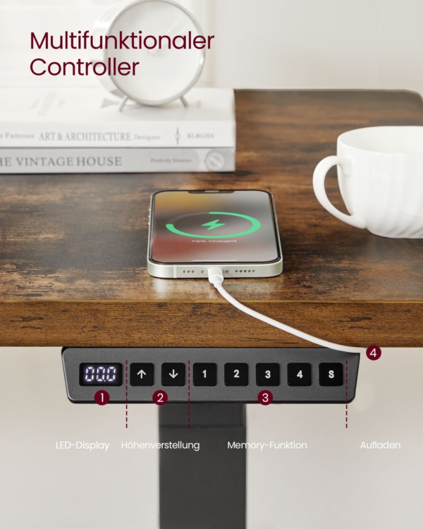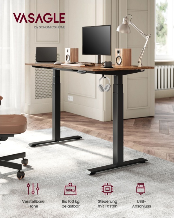 Reguliuojamo aukščio elektrinis stalas su atminties funkcija, juodas