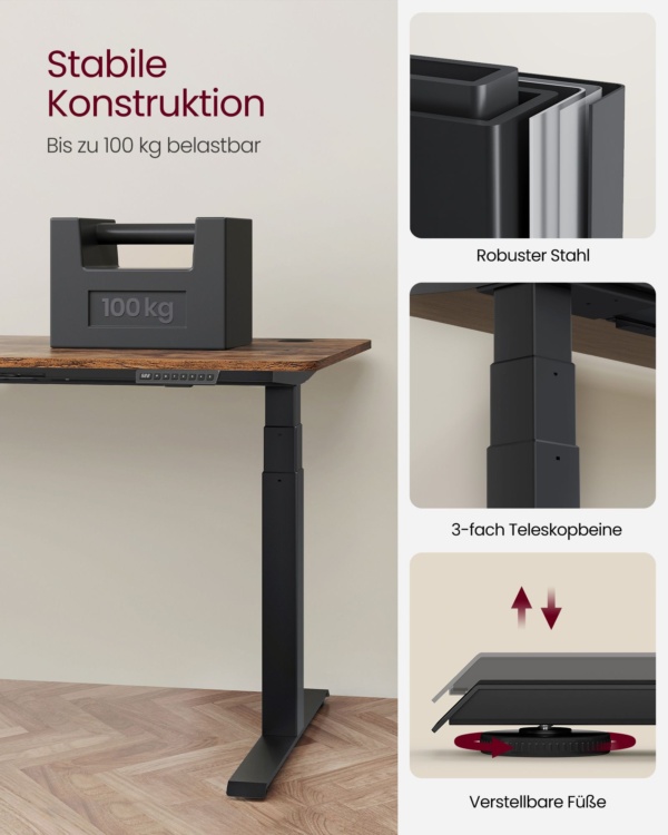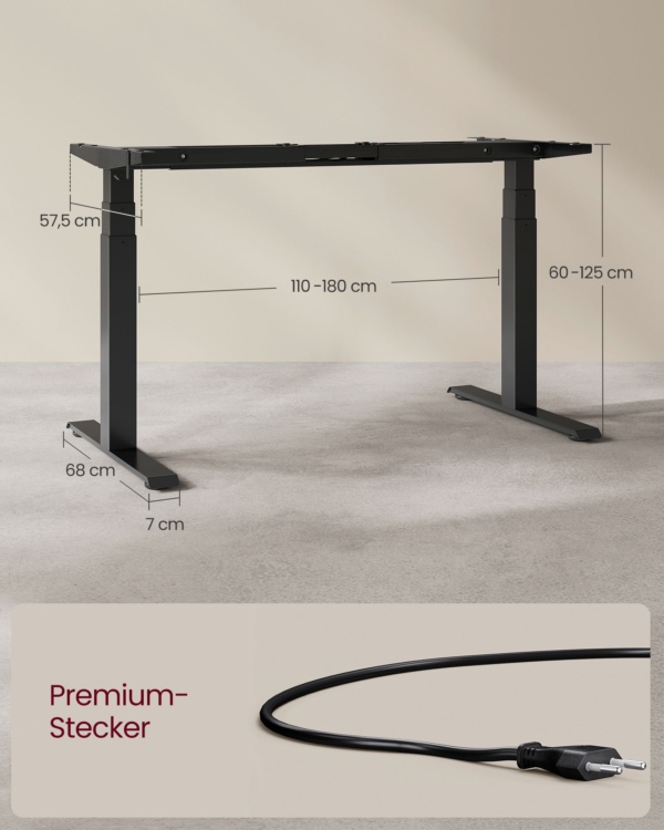 Elektrinis reguliuojamo aukščio stalas su atminties funkcija, juodas
