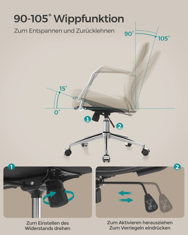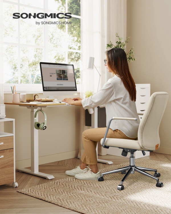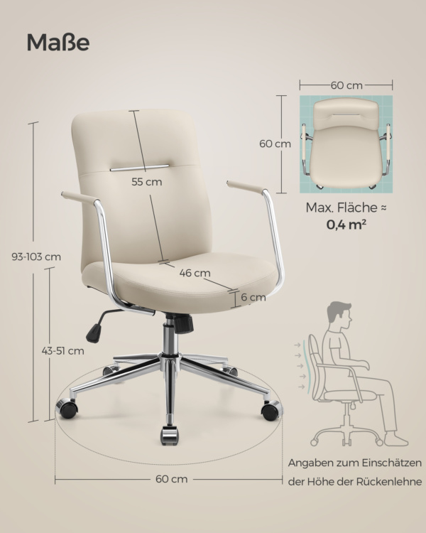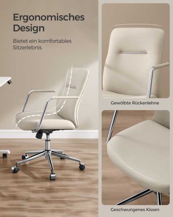 Ergonominė biuro kėdė su atlošu ir išlenkta sėdyne cappuccino smėlio spalvos