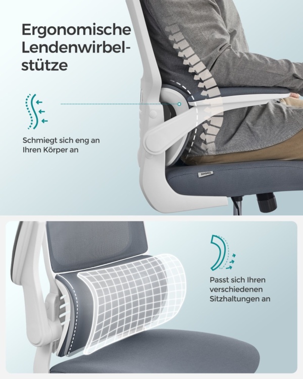 Ergonominė biuro kėdė su juosmens atrama ir reguliuojamu galvos atlošu balandžių pilkos spalvos