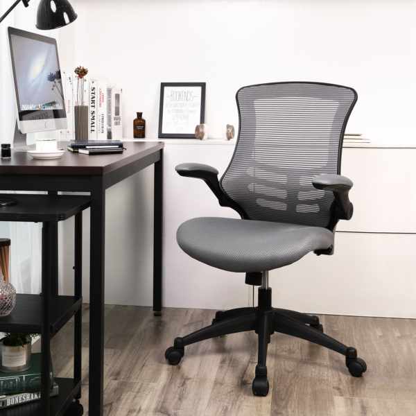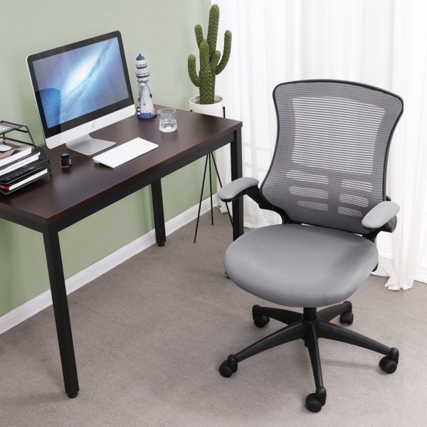 Ergonominė biuro kėdė su tinkliniu apmušalu pilka spalva