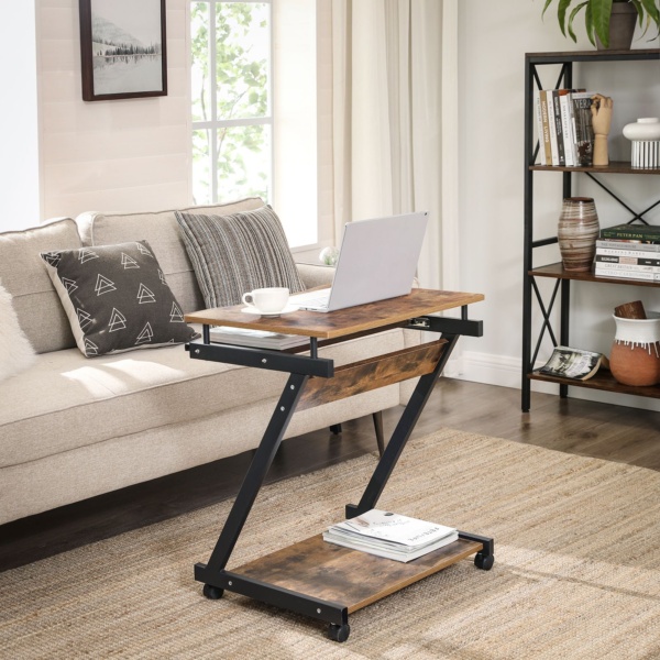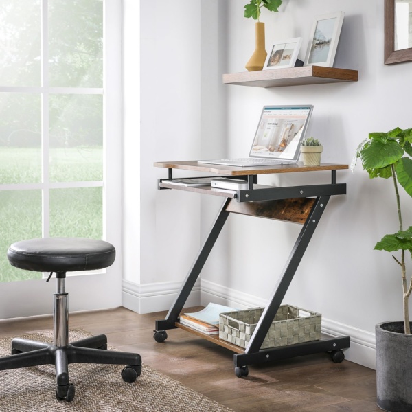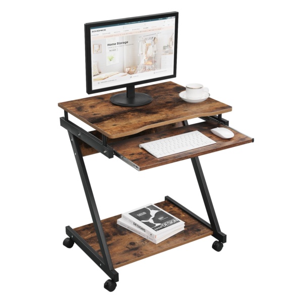 Kompiuterio stalas su klaviatūros stalčiumi vintažinis rudai juodas