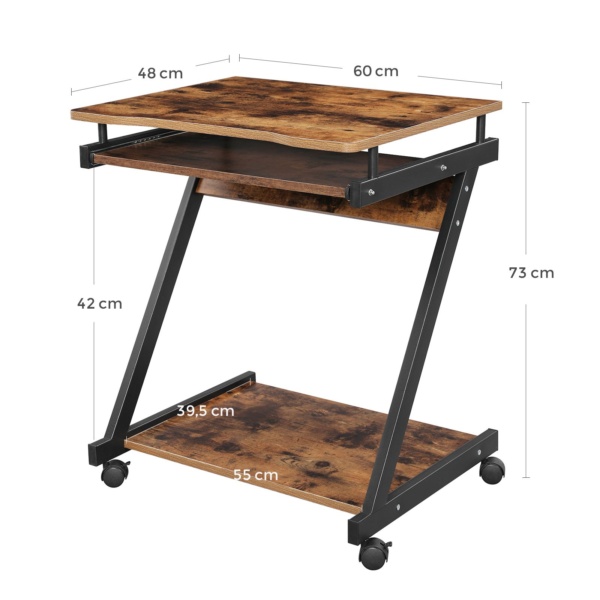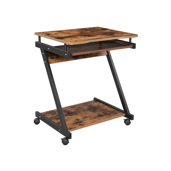 Kompiuterio stalas su klaviatūros stalčiumi vintage rudai juodas