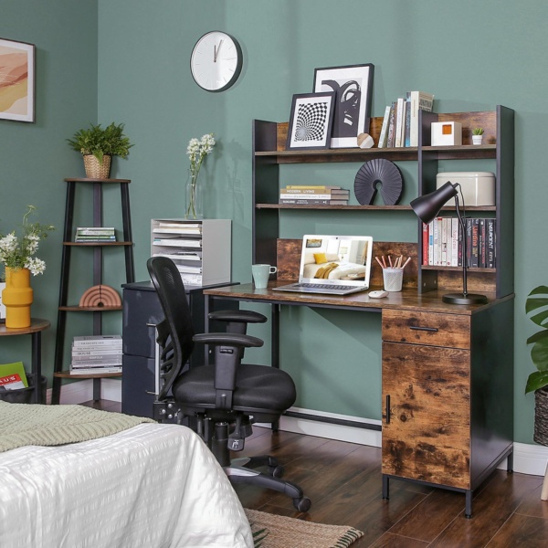 Kompiuterio stalas su lentynomis