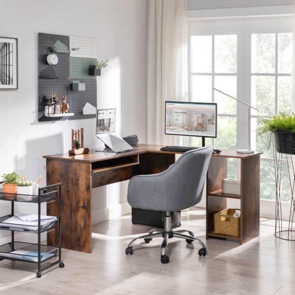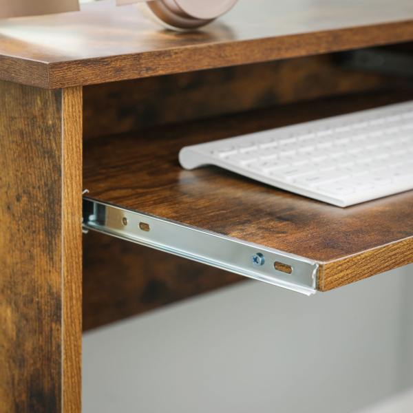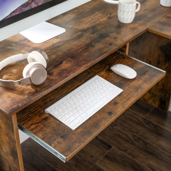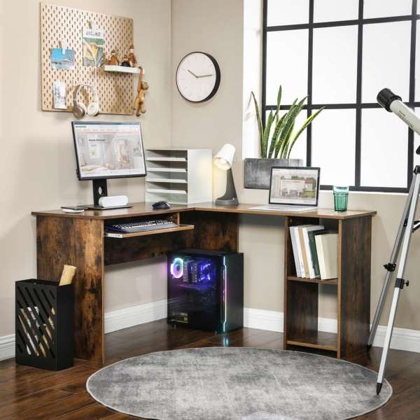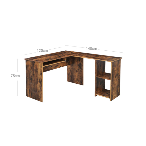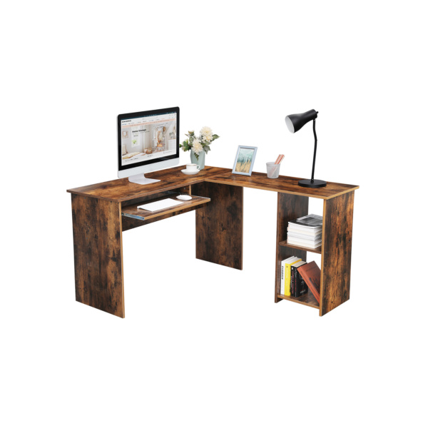 Kompiuterio stalas L formos, vintažinės rudos spalvos