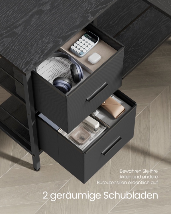 L formos rašomasis stalas su 2 stalčiais 135 x 105 cm juodas