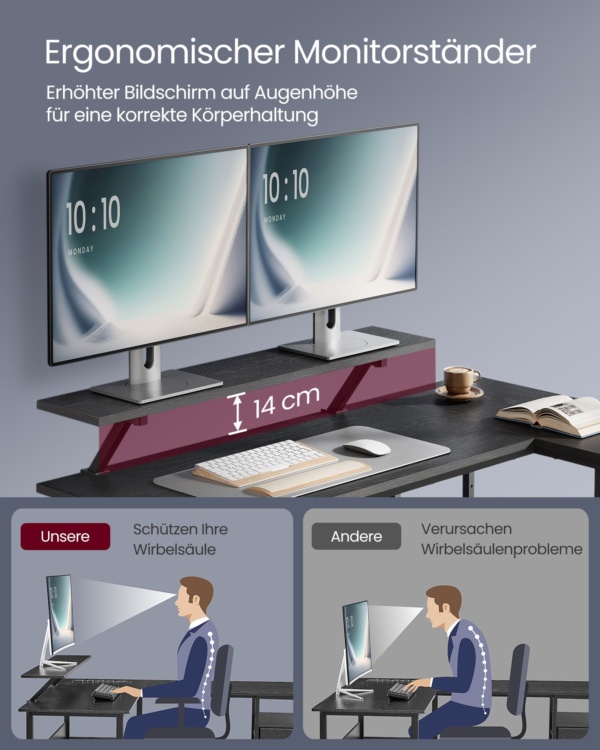 L formos rašomasis stalas su 2 stalčiais 135 x 105 cm juodos spalvos