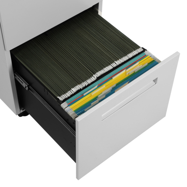 Kiekvienas mūsų dokumentų spintos stalčius turi po 1 reguliuojamą strypą. Tai reiškia, kad pagal poreikį galite rūšiuoti ir saugoti įvairių formatų (A4, raidžių, juridinio ar F4 formato) pakabinamas bylas.