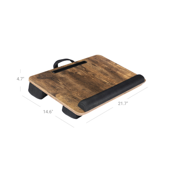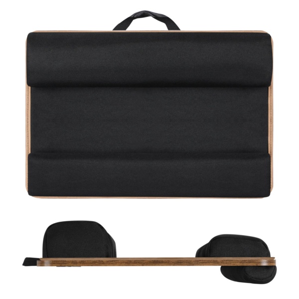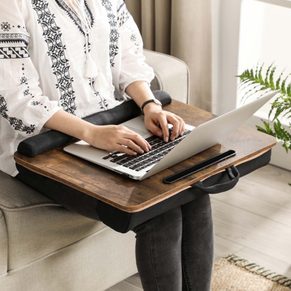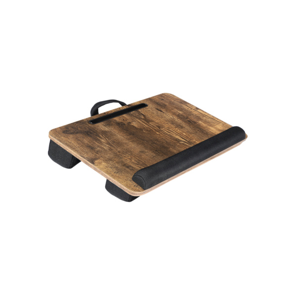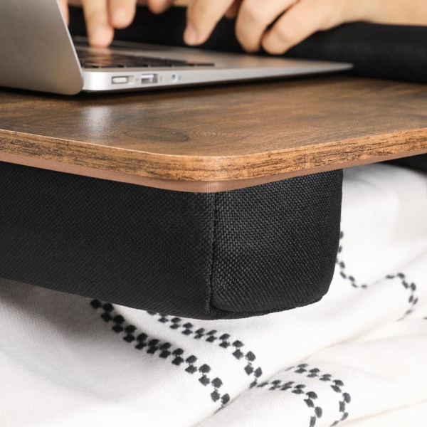 - Minkštas pagrindas padidina komfortą, kai šį nešiojamojo kompiuterio staliuką dedate ant kojų.