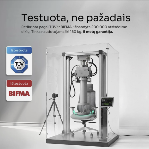TÜV SÜD sertifikuota saugumui ir kokybei. BIFMA standartas tvarumui. Tarptautiniai sertifikatai – tavo saugumo garantija.