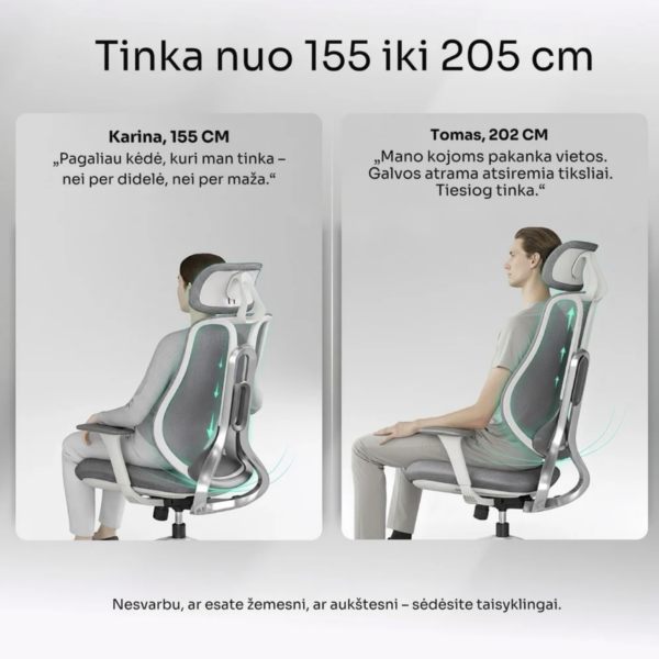 Ar esi 155 cm ar 195 cm, atlošas reguliuojasi palaikyti tavo kūną tiksliai ten, kur reikia.