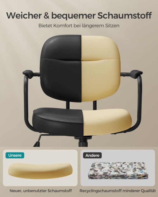 Biuro kėdė, pagaminta iš PU, su porankiais, juodos spalvos rašalu