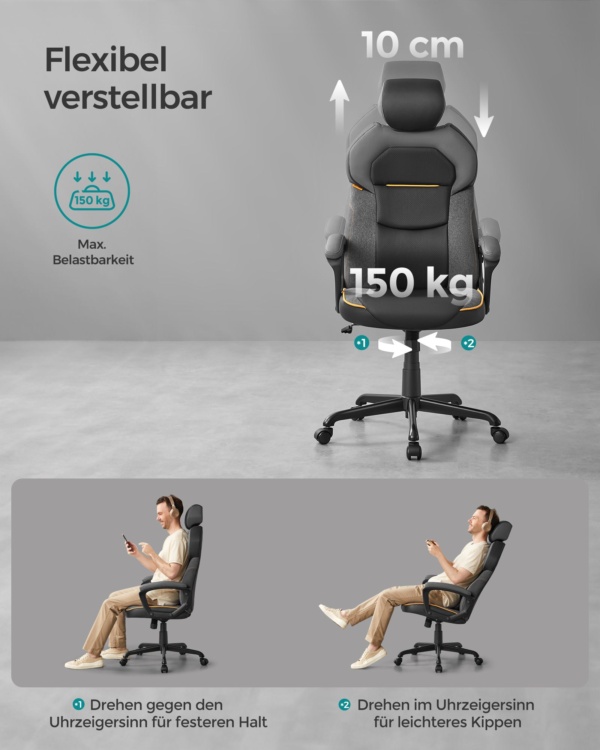 Biuro kėdė PU su reguliuojamu galvos atlošu ir supimo funkcija, klasikinės juodos spalvos