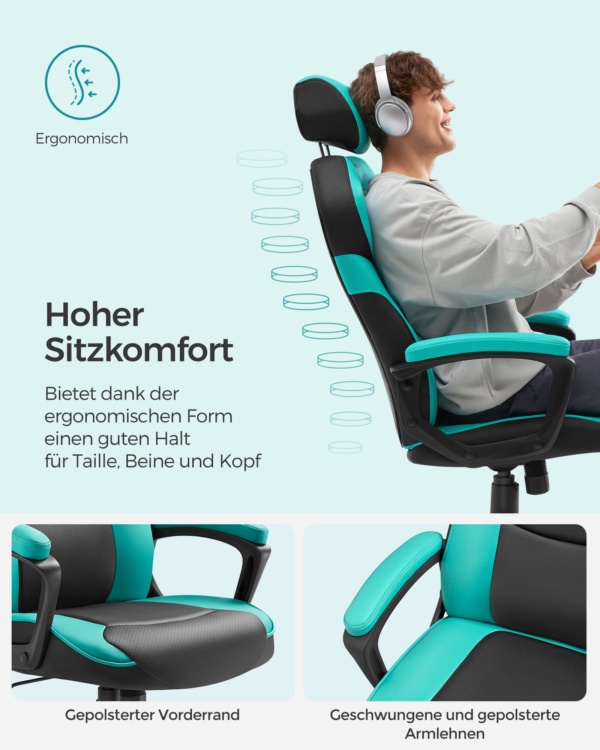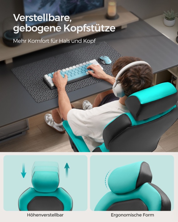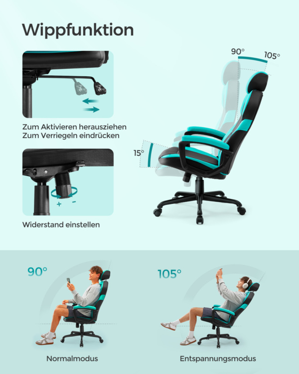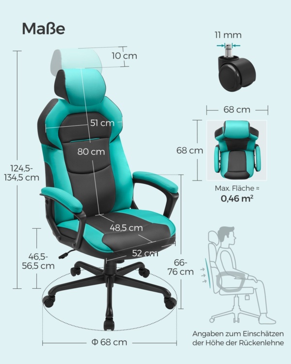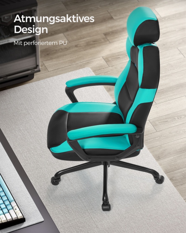 Rašomojo stalo kėdės reguliuojamas atlošas PU turkio mėlynos spalvos