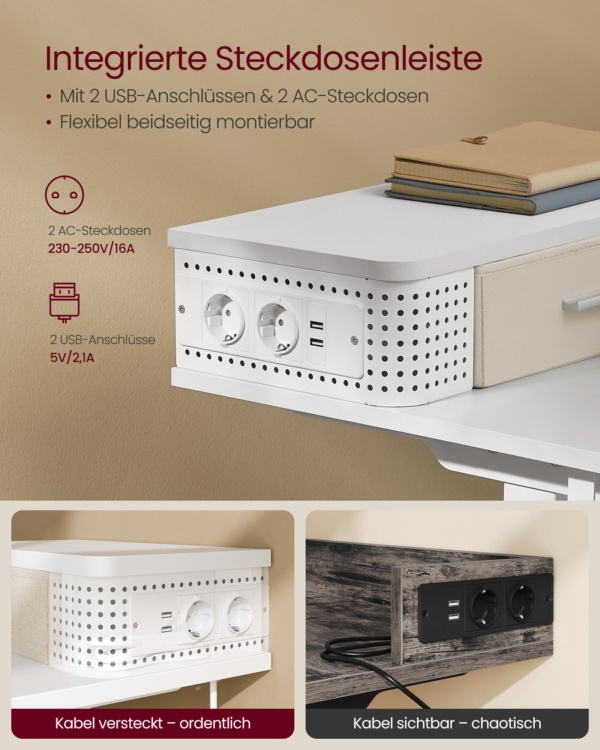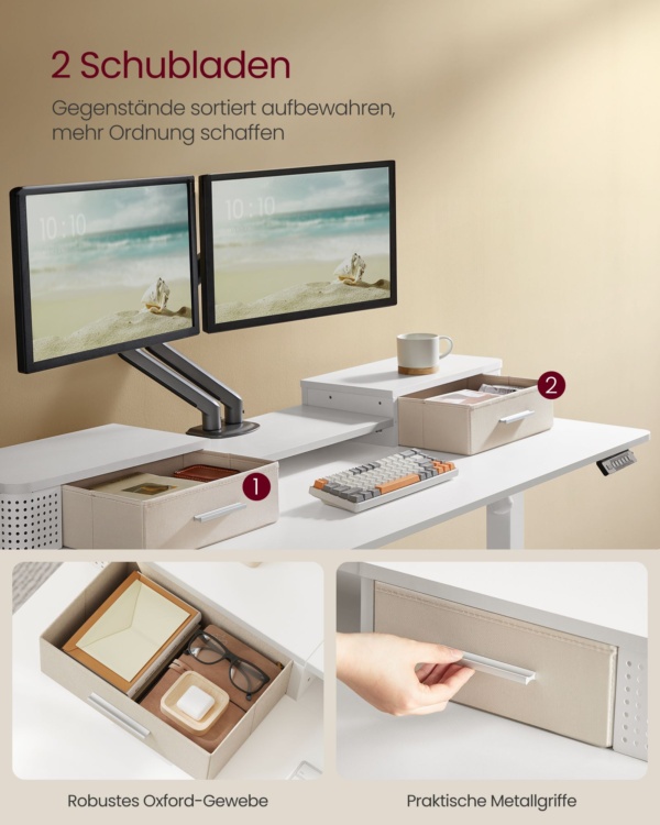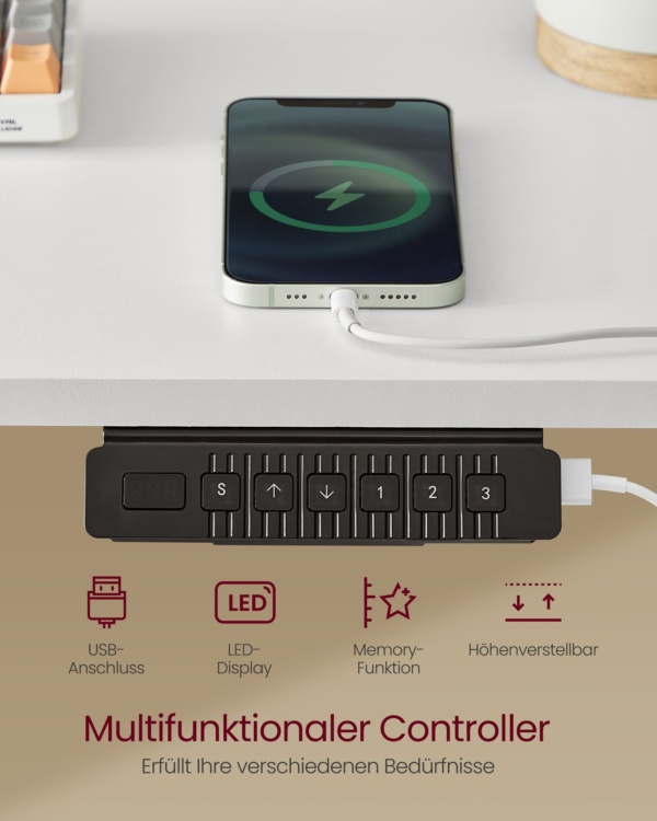 Reguliuojamas rašomojo stalo aukštis ir elektrinis debesų baltos spalvos stalas