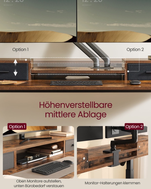 Elektrinis reguliuojamo aukščio darbo stalas ir elektrinis senovinis rudas stalas