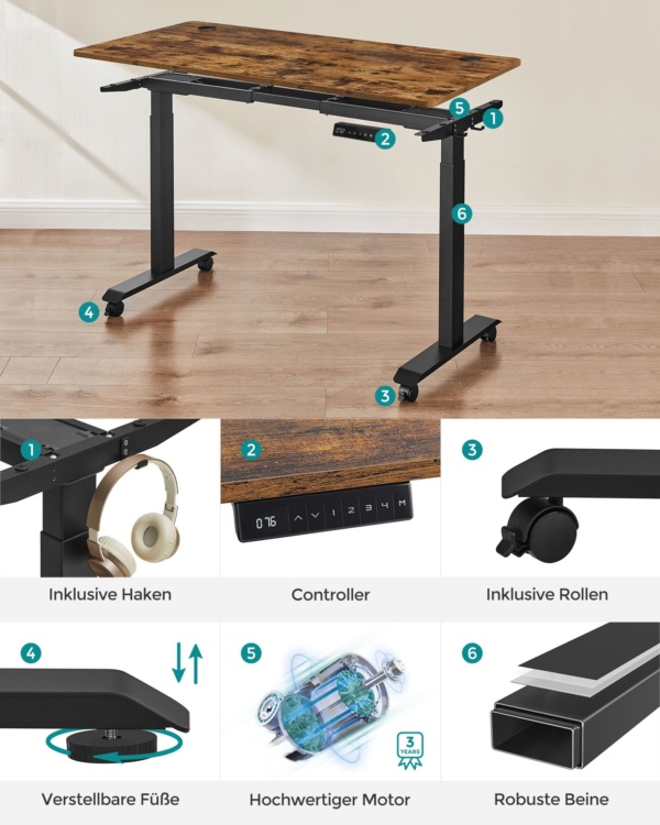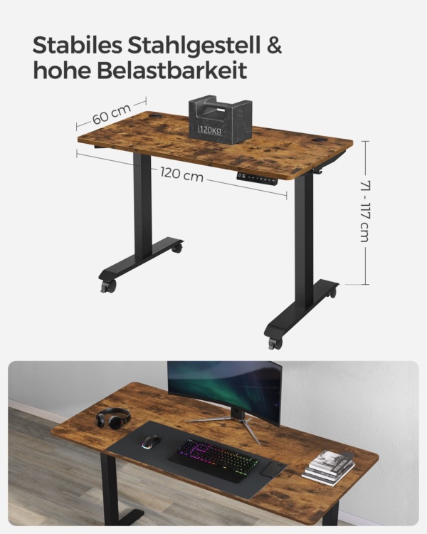 Reguliuojamo aukščio elektrinis stalas 120 x 60 cm Vintažinis