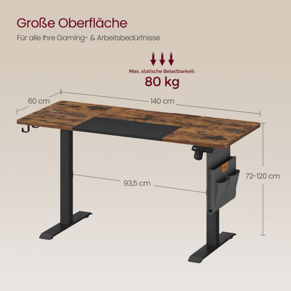 Reguliuojamo aukščio elektrinis stalas 60 x 140 x (72-120) cm