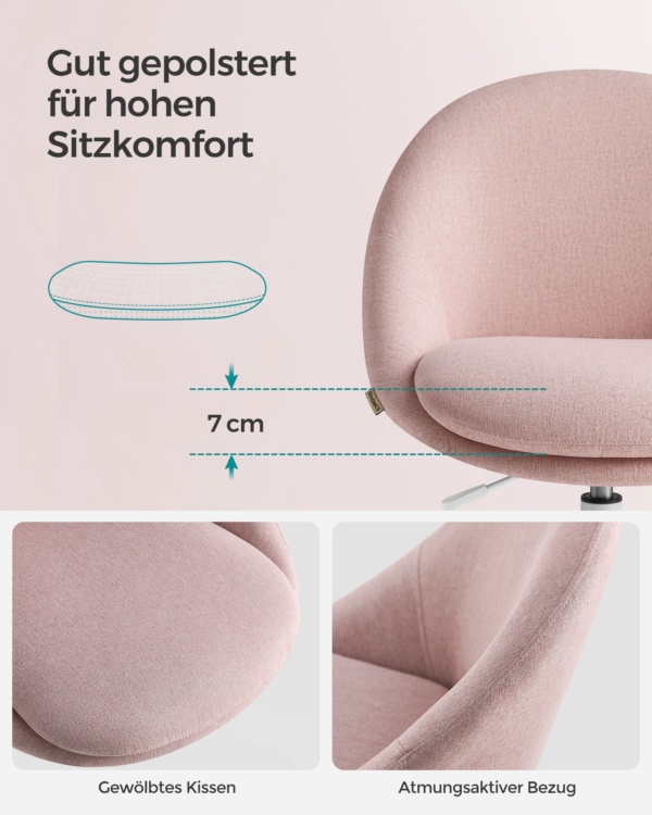 Reguliuojamo aukščio namų biuro kėdė rožinės spalvos