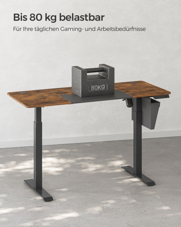 Elektrinis reguliuojamo aukščio darbo stalas vintažinis rudai juodas