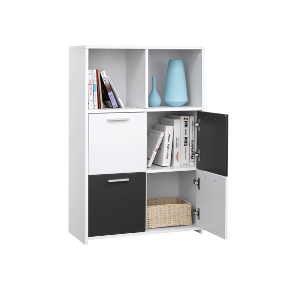- Ši knygų spinta turi 2 atvirus ir 4 uždarus skyrius.