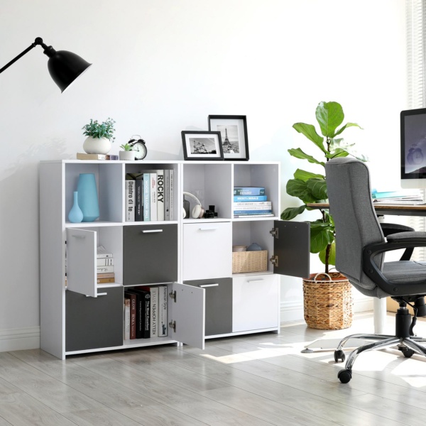 - Be to, dėl baltos ir pilkos spalvų derinio ši knygų spinta trauks akį jūsų namuose.