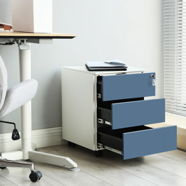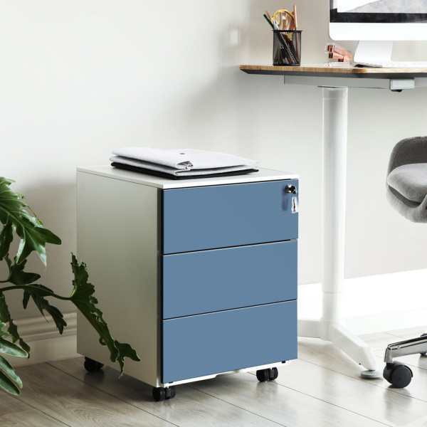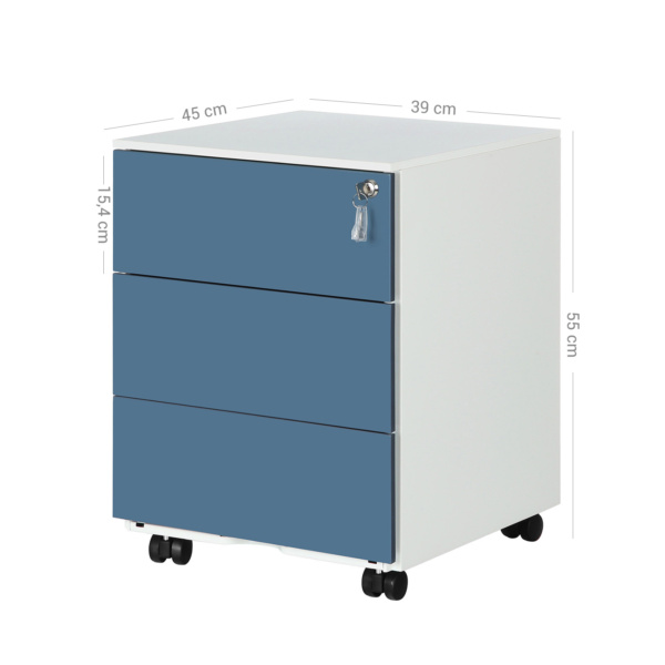 Užrakinamas mobilusis pjedestalas baltai mėlynos spalvos