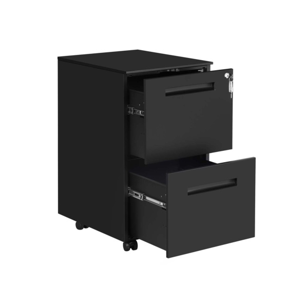 Užrakinamas mobilusis pjedestalas matinės juodos spalvos