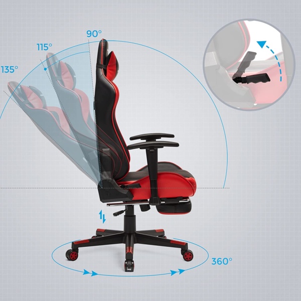 - Sėdynė reguliuojamo aukščio, o atlošą galima reguliuoti 90-135° kampu, kad galėtumėte rasti idealią sėdėjimo padėtį ekrano aukščio atžvilgiu.