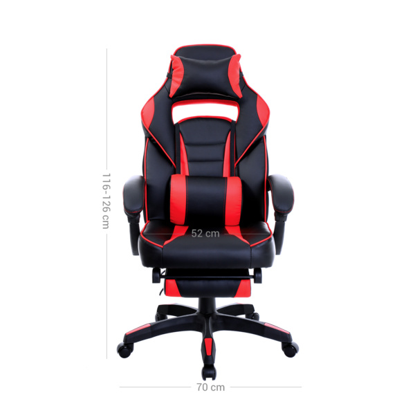 - Šauni išvaizda: baltos ir juodos spalvų raštas ir atlošo viršuje esanti išpjova primena sportines sėdynes lenktyniniame automobilyje. Taigi kiekvienas vaizdo žaidimas prasideda profesionaliai ir nesvarbu, kaip jis baigsis, su šia kėde jau esate nugalėtojas!